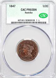1847 BRAIDED HAIR 1/2C | 1847 | $18,150.00 | PR 65 | Rare Coin Wholesalers | Yes |