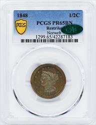 1848 BRAIDED HAIR 1/2C | 1848 | $23,000.00 | PR 65 | Rare Coin Wholesalers | Yes |
